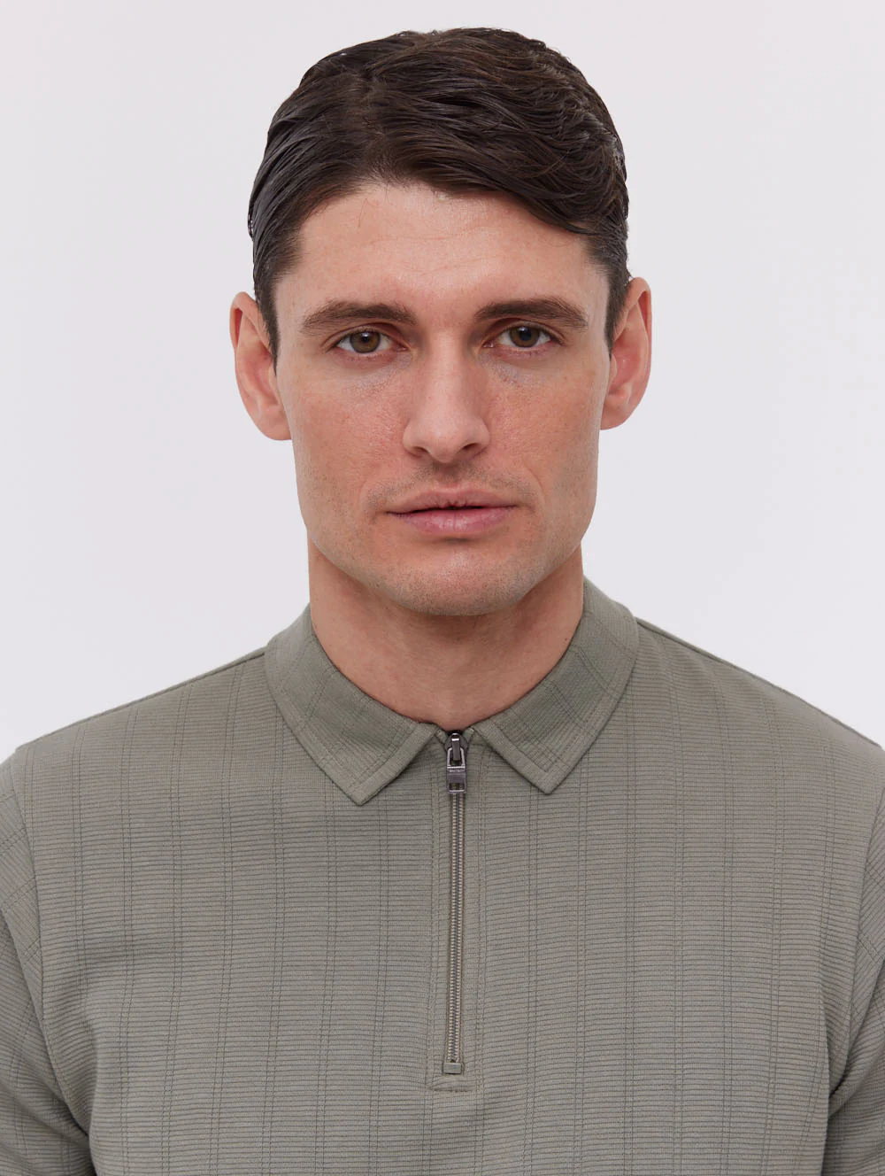 - Ribbed collar with zip-up
